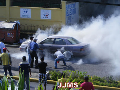 Incendio de un carro Toyota Camry, la mañana de este martes, en la avenida Luis Ginebra, frente a la Dirección Norte de la Policía Nacional en Puerto Plata.